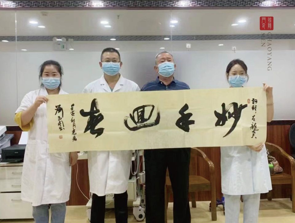 在众多前来就诊的患者当中,有一位特殊的患者。老人是一位陆军退休老干部,2月底突发面瘫,嘴角严重歪斜、眼睛闭合不全,曾在北京多家医院看诊治疗效果不明显。左龙主任针对老人进行了详细的检查,采用药物结合神经修复治疗,经过一周门诊治疗,患者成功痊愈。老人亲自用毛笔书写下“大医精诚”、“妙手回春”、椿萱并茂”,来表达对左龙主任和医护团队精心诊疗的感谢。
